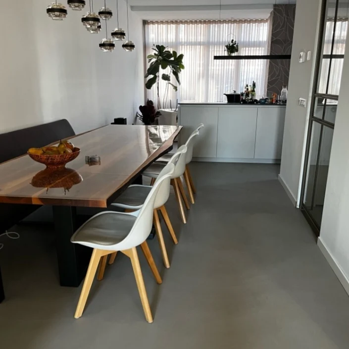 In de woonkamer zorgt een Lavasteen gietvloer voor een prachtige, tijdloze uitstraling die naadloos aansluit op elke interieurstijl. Het is alsof je een stukje natuur in huis haalt met de warme tinten en natuurlijke textuur van lavasteen, die een gezellige sfeer creëren. Deze slijtvaste vloer is niet alleen mooi, maar ook praktisch dankzij zijn duurzame en onderhoudsvriendelijke karakter, perfect voor het centrale leefgedeelte van het huis waar veel beweging en activiteit plaatsvindt. De Lavasteen gietvloer biedt extra comfort en luxe in de woonkamer. Je kunt bovendien kiezen uit verschillende kleuren en afwerkingen, zodat de vloer precies past bij jouw persoonlijke smaak en inrichting. Vloerverwarming kan eenvoudig worden geïntegreerd voor extra comfort.