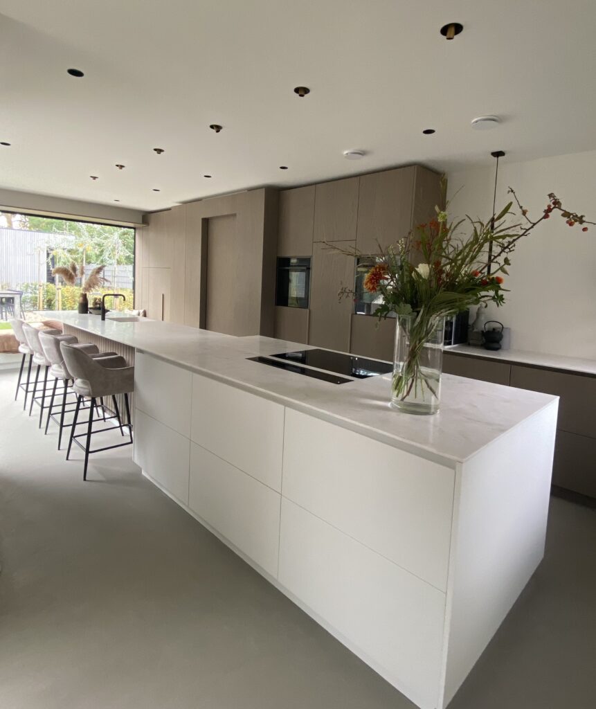 Een Lavasteen gietvloer past perfect in de keuken. Deze vloer kan goed omgaan met de intensieve belasting en vochtige omstandigheden die in de keuken voorkomen. Geen zorgen meer over gemorste vloeistoffen, want de vloer is water- en vlekbestendig. Je kunt alles gemakkelijk schoonmaken zonder blijvende schade. Bovendien is de vloer naadloos, wat betekent dat er geen vuil of etensresten in voegen blijven hangen. Zo blijft je keuken niet alleen hygiënisch, maar ook stijlvol. Lavasteen gietvloeren bieden een mooie en praktische oplossing voor elke keuken. Voeg daarbij de mogelijkheid om vloerverwarming te integreren en je hebt de perfecte vloer voor een moderne keuken.